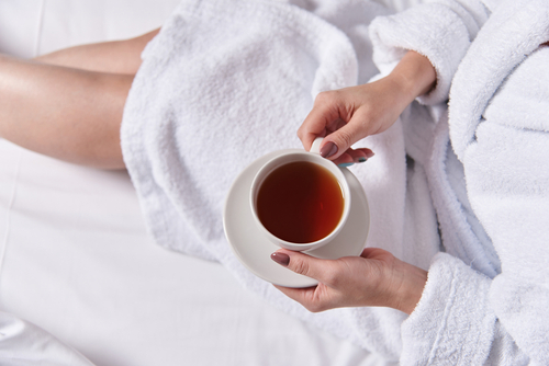 Overall hydration helps to alleviate symptoms, and hot drinks are great for those suffering from cold symptoms. Herbal tea is a great option as it can soothe sore throats and general congestion and boost the immune system before bed.